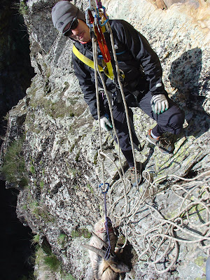 No dia do salvamento, e após pequeno almoço reforçado, lá fomos na verdade o Spagurja é que ia mais animado pois eu queria mesmo era ir escalar e estava disposto a indrominar o esquema para levara minha a diante. Chegados á Catedral do Medo não havia forma de encontrar o pastor ou contactar o dito, foi a desculpa perfeita