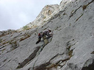 Já na Catedral, e a caminho das vias, demos com um cabrito tresmalhado que ainda arrastava o cordão umbilical, não querendo atrapalhar lá fomos dar cabo dos nossos esbeltos corpinhos nos extra prumos da Catedral. Na volta e sem nunca ver sinal de cabras, lá demos com o bicho novamente, rapidamente entramos em contacto com os nossos "contactos" locais (leia-se pastores) e fomos informados que a rés estava tresmalhada. Sem perder tempo convocamos todos os membros da Equipa de Resgate Caprino Alpinos, que por acaso e como sempre já se encontravam, todos, no local onde a sua presença era indispensável. Em menos de nada, e não sem antes se darem umas corridas e uns trambolhões dignos de serem filmados, (e muito pouco dignos) concretizou-se mais um magnifico resgate desta muy nobre equipa de resgate. No final o cabrito foi entregue em casa do pastor, onde o maduro, o verde, o queijo e a linguiça não tinham descanso.